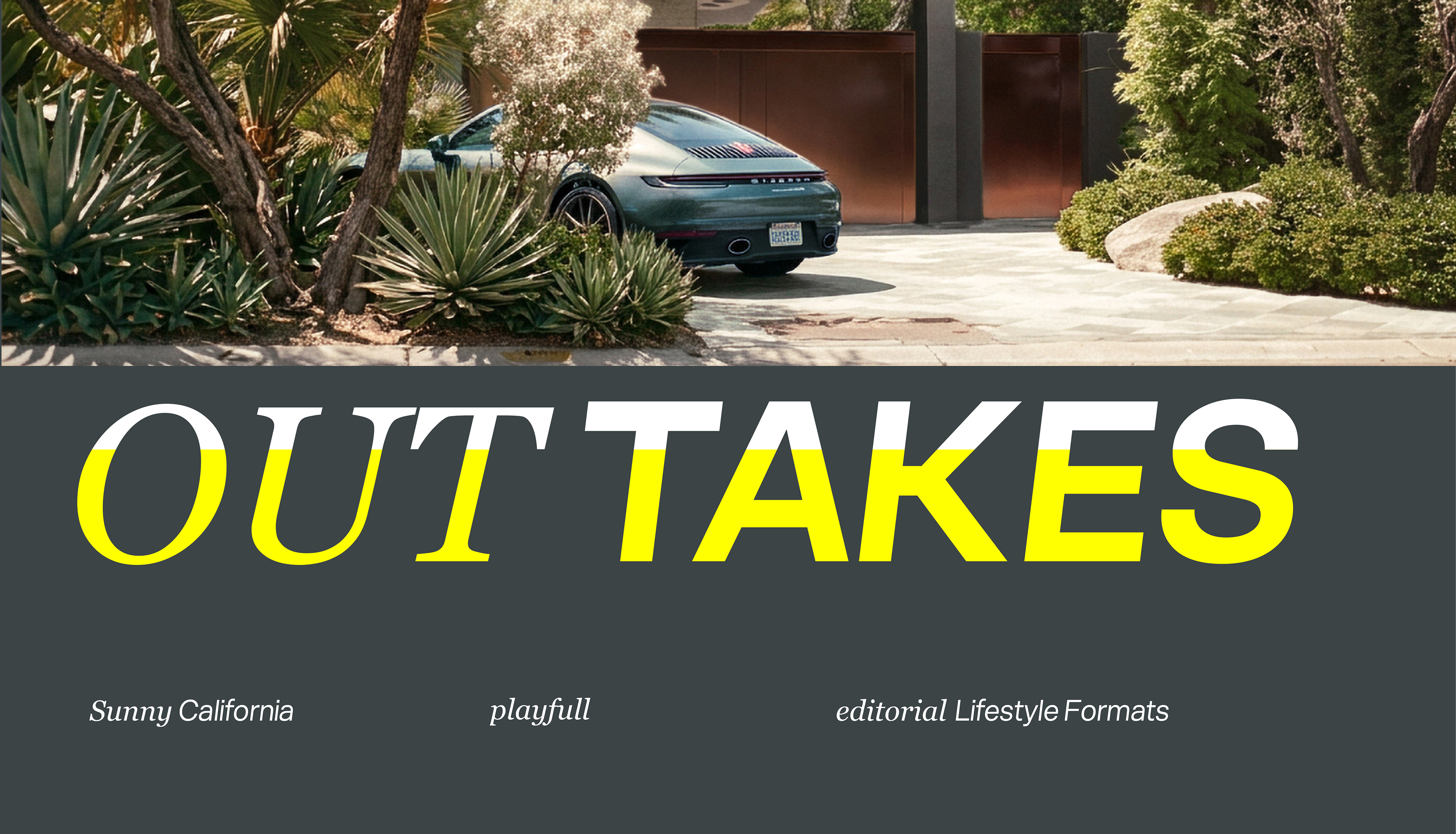 Um die „Kulturikone“ zu inszenieren, haben wir Kampagnenmotive für den neuen 911 in einem Fotostil entwickelt, der inspirierende Bilder in den Vordergrund stellt. In einem visuellen Stil mit bewusst reduzierten Kompositionen, der Seele und Charakter bewahrt und ein Framing für das Fahrzeug bildet. Ergänzt wird dies durch eine hochwertige Ästhetik mit einer charakteristischen "Sunny Califronia" – Farbpalette, welche die Kommunikationsfarbe des 911ers unterstreicht.