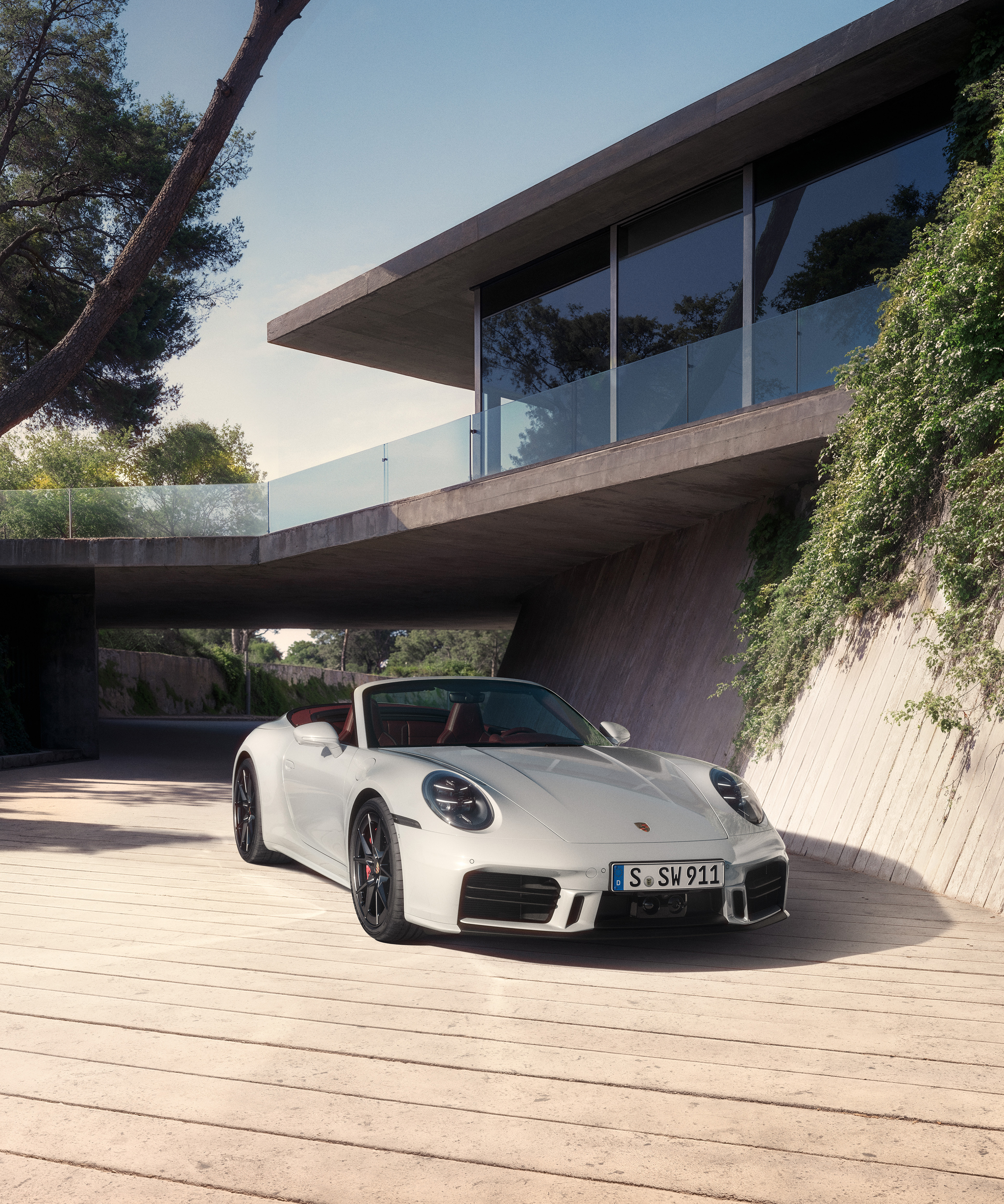 Sehr früh, in den Anfängen der AI-Bildentwicklung wollten wir das aktuell Mögliche ausloten, So entstanden Motive für den puristischen 911 Carrera S/T aus einer wilden Mischung aus Fotografie, CGI & AI.